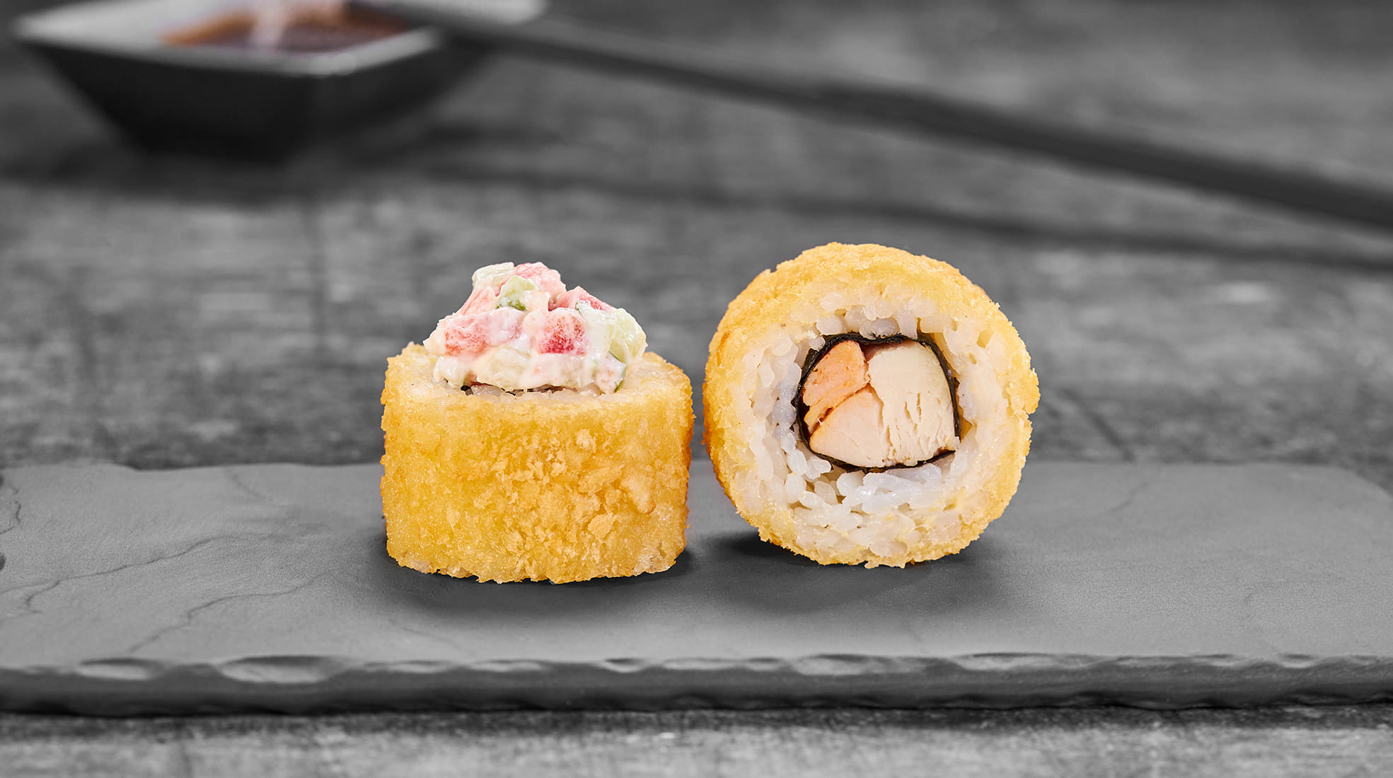 Состав: Курица, оливье соус, темпурный кляр, панировочные сухари, рис, нори *Внешний вид блюда может отличаться от фото на сайте.